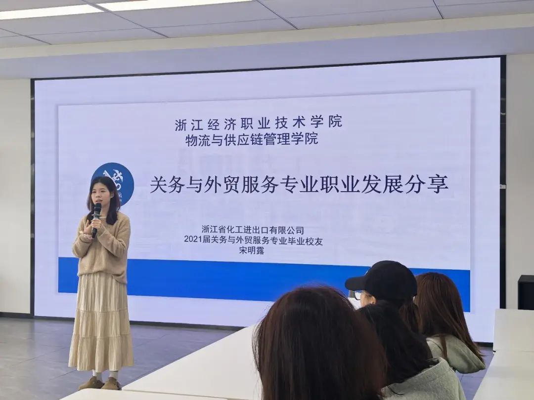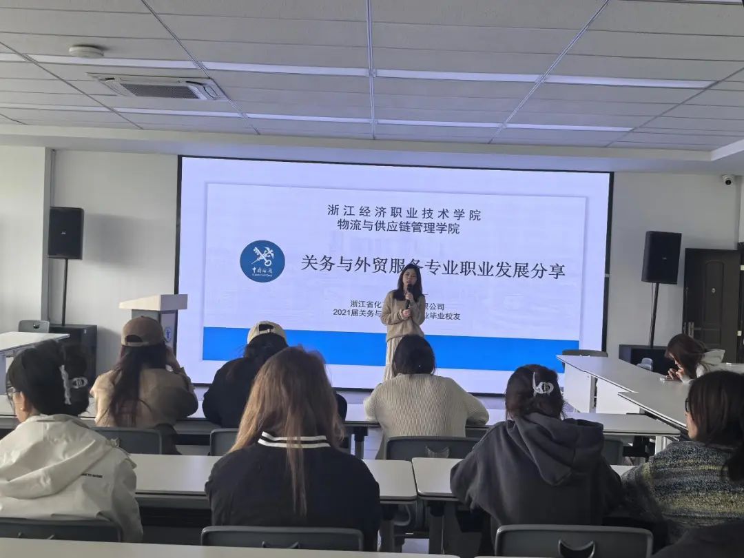 2024年11月20日,物流与供应链管理学院特别邀请了2021届关务与外贸服务专业的优秀校友宋明露为关务与外贸服务专业的学生带来了一场关于职业发展的讲座,她以自己从大学参加技能竞赛到成功踏入行业并取得显著成就的经历,为同学们带来了宝贵的经验分享与职业发展的指导。