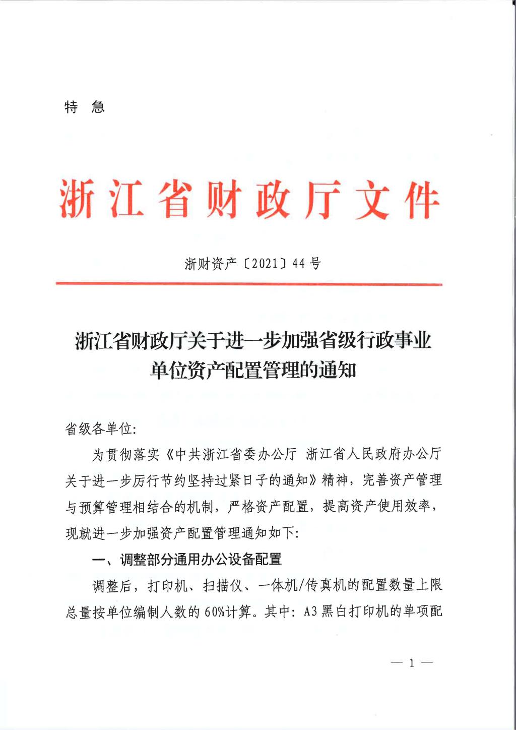 浙江省财政厅关于进一步加强省级行政事业单位资产配置管理的通知