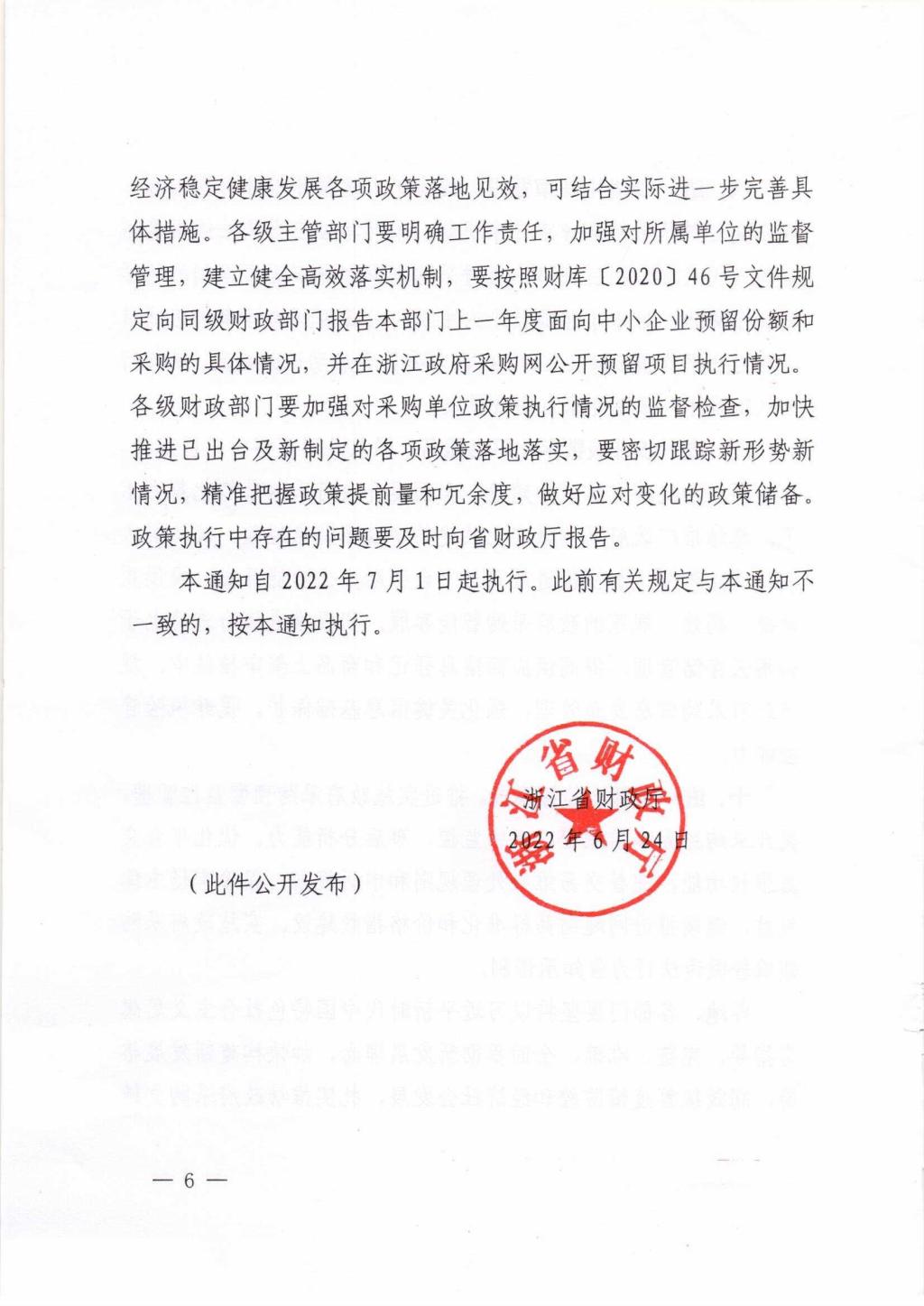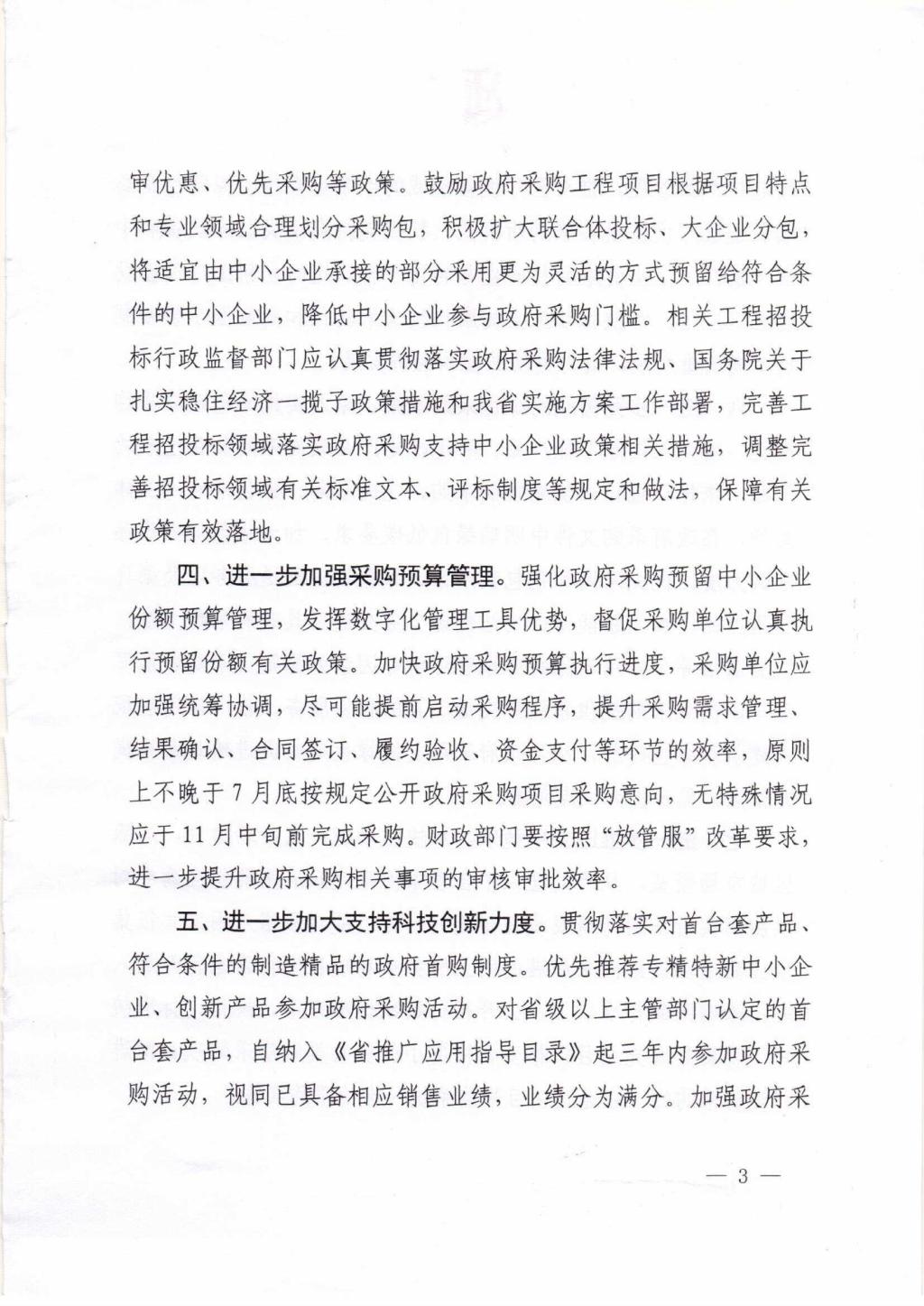 浙江省财政厅关于进一步加大政府采购支持中小企业力度且力扎实稳住经济的通知