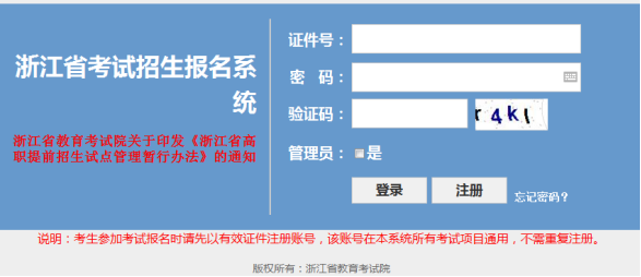 请使用原高考报名时的证件号和密码登录,不要注册。登陆系统后考生务必如实填写相关信息。