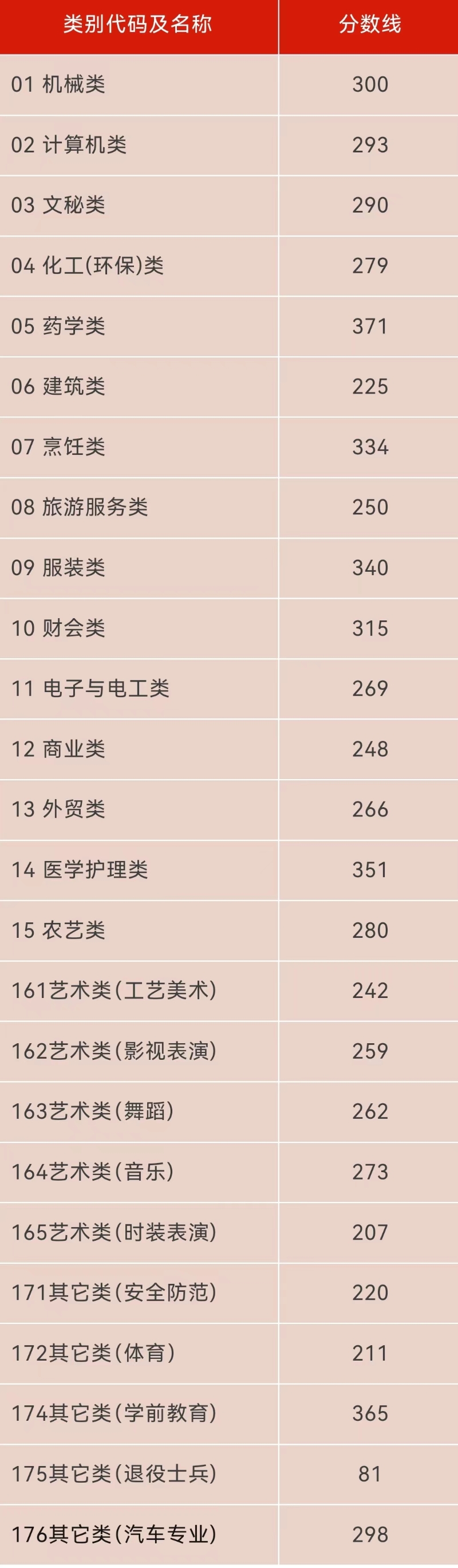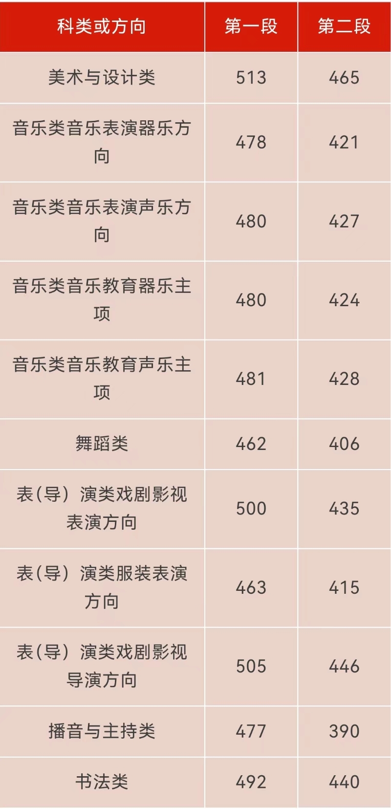 艺术类统考批各科类或方向综合分分段线